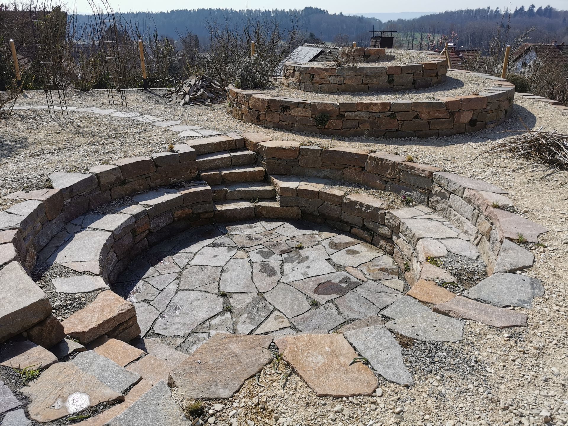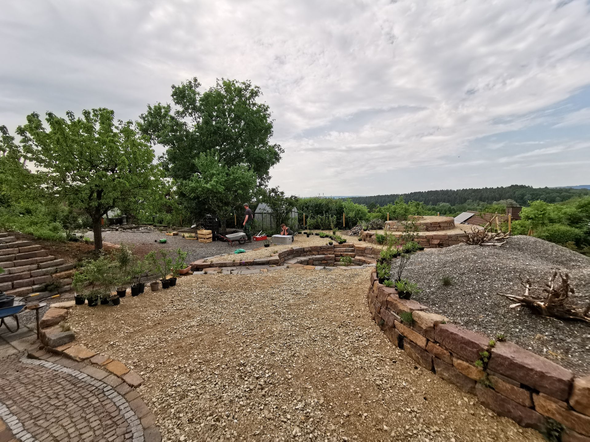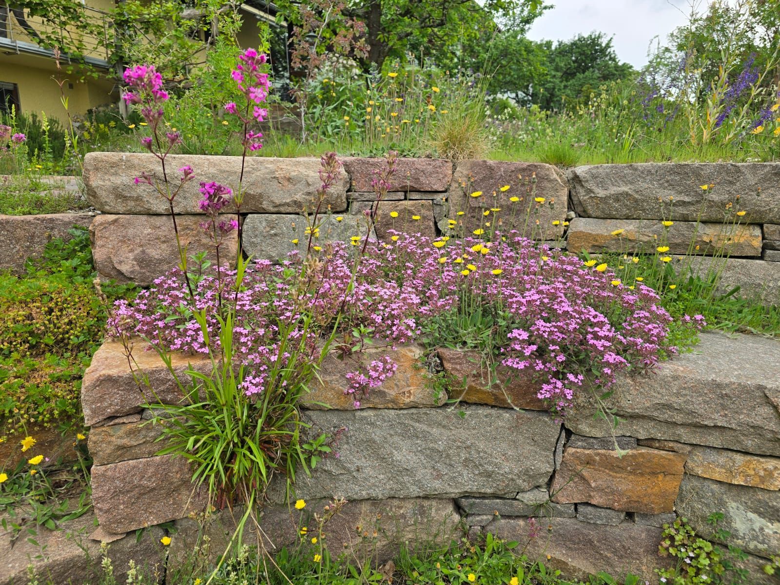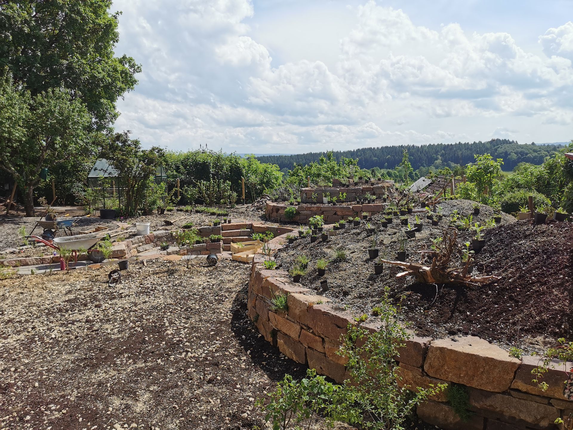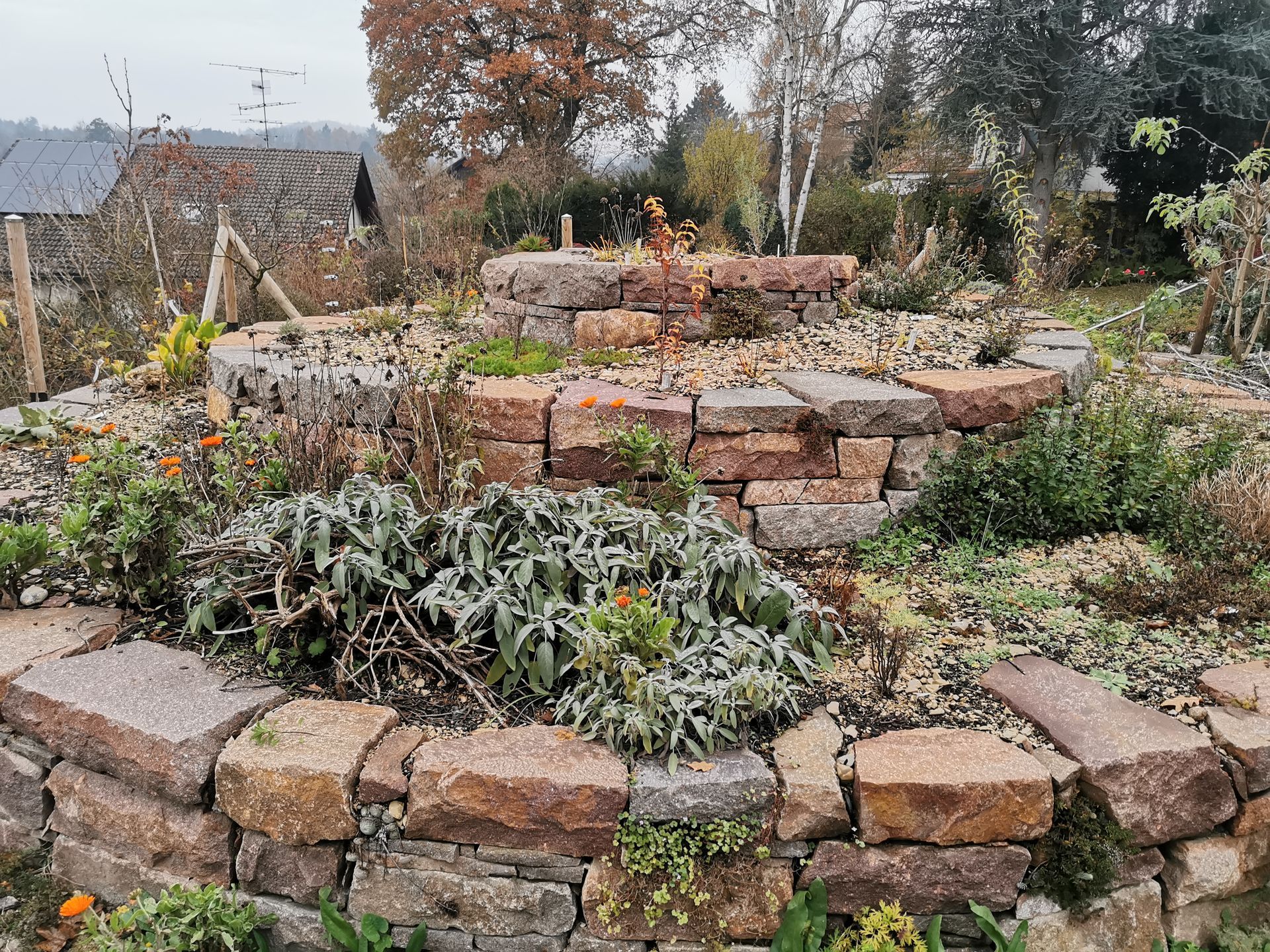 Durch den Bau einer großen Stützmauer wurde der Hausgarten um 1/3 vergrößert, so war es möglich verschiedenste Räume und Pflanzzonen zu schaffen, die fließend ineinander übergehen.