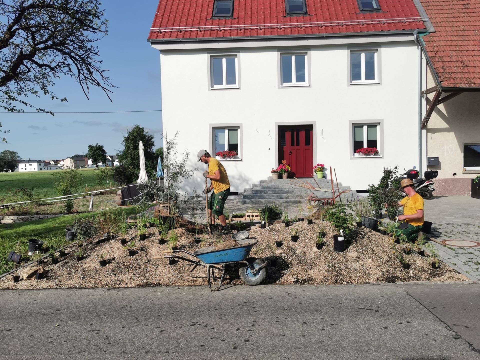 Ansaat der Einfahrt mit Blumen Kräuter-Rasen