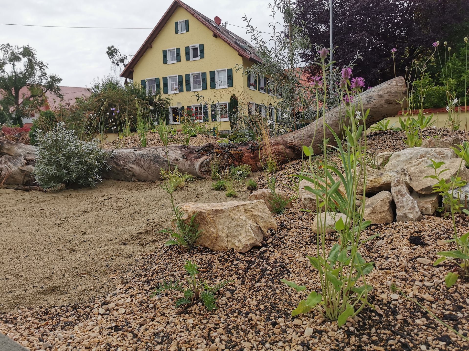 Der Kundschaft wichtig waren die möglichst naturnahen Bauweisen, so entstanden zahlreiche Habitatelemente für heimische Pflanzen und Tiere.
